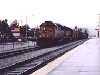 In the winter of 1998 California was in the grips of El Nino. For railfans, that meant braving daily downpours for the chance to catch a little trackside action. On a typically ugly day in late February, we piled into the car and battled the raindrops all the way to Oakland. The rain let up only briefly. Most of the visit we huddled under umbrellas and awnings, freezing from the gusty winds as we took shelter in the walkway above the tracks.