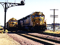 If it is switching action you're after, the industrialized Delta region of eastern Contra Costa County has plenty to offer. Road switchers stationed in Pittsburg work in the yards between the DuPont chemical plant located at Milepost 1147.6 in Oakley and the USS-POSCO steel mill at MP 1155.0 in Pittsburg. In addition to those two major rail customers, the Burlington Northern Santa Fe also services the Gaylord paper mill, Western Steel and Tinplate, Kemwater and Georgia Pacific, among others.